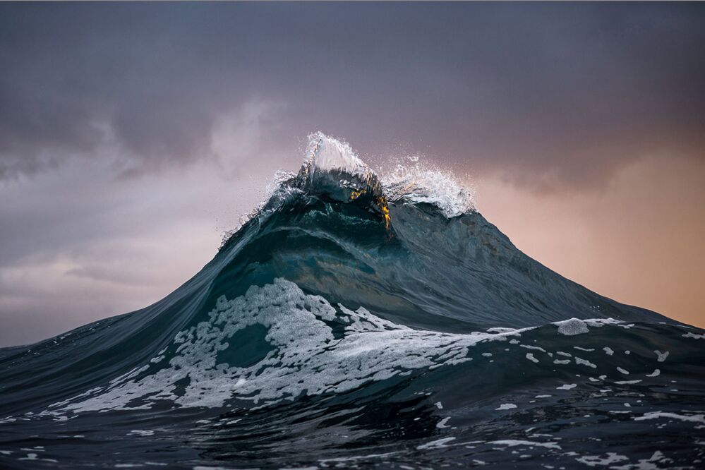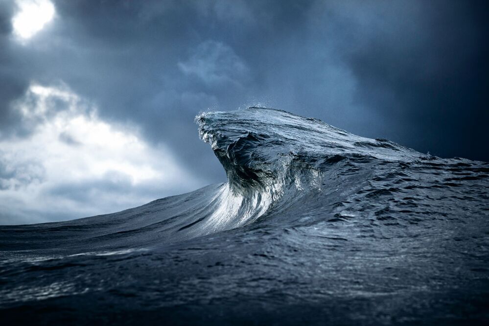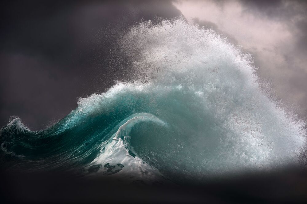 Es gibt Menschen, die haben ein Lebensthema. Ray Collins ist einer von ihnen. Sein Thema: Wellen. Wellen sehen, Wellen reiten, Wellen spüren, vor allem aber Wellen fotografieren. Der 35-jährige australische Fotograf arbeitete viele Jahre im Bergbau, einen Kilometer unterhalb der Erdoberfläche, umgeben von Schwärze und Hitze, sein „schwarzes Leben“. Ganz im Kontrast dazu steht – nein: fliegt, bauscht, kräuselt – das, was er sein „blaues Leben“ nennt. Die Berge, die sich vor ihm türmen, die Täler und Schluchten, die Oberflächen, die sich von Sekunde zu Sekunde ändern, sind sein Faszinosum. Er nennt sie „geografische Strukturen“. Seit zehn Jahren fotografiert Collins das Meer, taucht ein, lässt sich mitreißen vom Wasser, ist süchtig nach seiner Gestalt, seinen Formen, nach der Schönheit. „The Now“ hat er seinen Kurzfilm über die Wellen genannt; er beschreibt gut, wie er denkt und lebt, dieser tätowierte, blonde Hüne, dem sich die Kraft des Ozeans in den Körper eingeschrieben hat. Ganz im Jetzt nämlich, fokussiert auf den einen Moment. Die Farben sind ihm, dem Farbenblinden, weniger wichtig als das Licht. Auch Surfer lichtet er ab, in all ihrer Eleganz und ihrem Wagemut, aber eigentlich dienen sie nur dazu, den Wellen einen Maßstab zu geben. Ray Collins ist ein Suchender, der gefunden hat und weiter sucht. Jeden Tag. In seinem blauen Leben. zdb