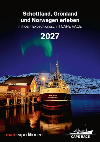 Auch für die Saison 2027 bieten wir Ihnen wieder außergewöhnliche Reisen auf unserem Expeditionsschiff „Cape Race“ an. Wir erkunden im Frühjahr die zauberhafte Inselwelt der schottischen Hebriden, im Sommer die Küsten Grönlands bis hoch in den Norden, ins sagenumwobene Thule, und im Herbst und Winter besuchen wir die tiefen Fjorde Nordnorwegens mit ihren Polarlichtern und Walen. Zu den detaillierten Reiseangeboten