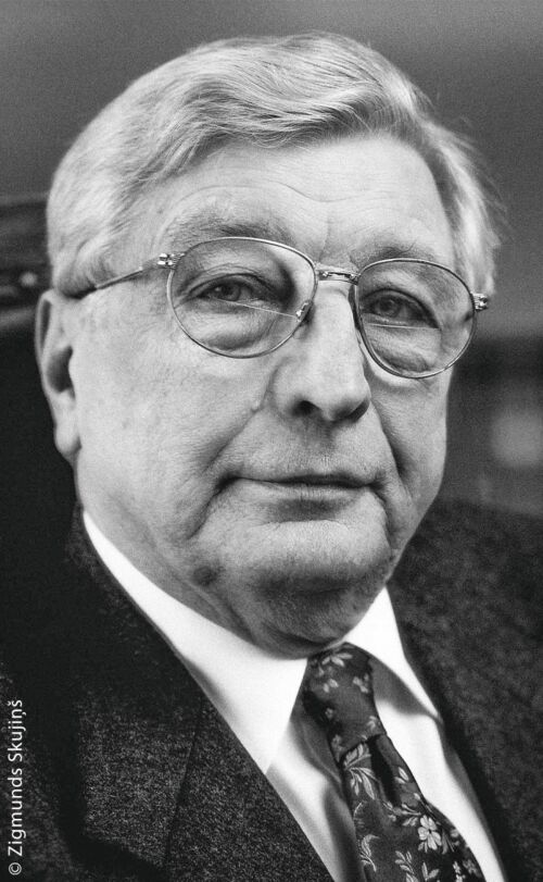 Zigmunds Skujiņš (sprich: Skuiensch) wurde 1926 in Riga geboren. Nach Anfängen im Journalismus wandte er sich ganz dem literarischen Schreiben zu. Zu seinem Werk gehören zahlreiche Romane und mehrere Erzählbände sowie Theaterstücke, Drehbücher und Essays. Skujiņš ist einer der renommiertesten Schriftsteller seines Landes. Sein Werk wurde in viele europäische Sprachen übersetzt und millionenfach verkauft. Das Bett mit dem goldenen Bein (1984) gilt als sein größter Erfolg. Skujiņš starb im März 2022 in Riga.