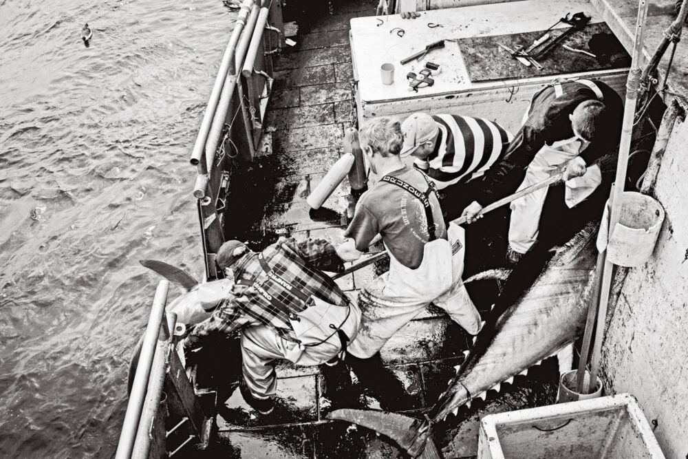 Wahrscheinlich gibt es niemanden auf der Welt, der mehr über Schwertfische weiß, als jener Mann, der hier am Heck des Schiffes steht wie sein eigenes Denkmal. Er hat seine Schenkel gegen die Reling gestemmt, die Augen leuchten hinter den müden Lidern, der Mund ist ein zahnloses Lachen. Langsam gleitet er mit seinem Schiff aus dem Hafen von Sambro. Vorbei an einem blanken Felsen, auf dem ein paar Seehunde liegen, dann kommt eine Kolonie Kormorane, und dahinter steht der älteste funktionierende Leuchtturm Amerikas. Den hat dieser Mann vor 50 Jahren noch mit Lebensmitteln beliefert. Heute pulsiert in ihm ein automatisches Licht. Danach ist nur noch Atlantik.