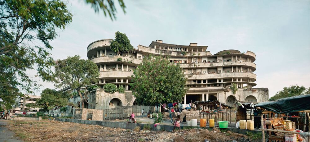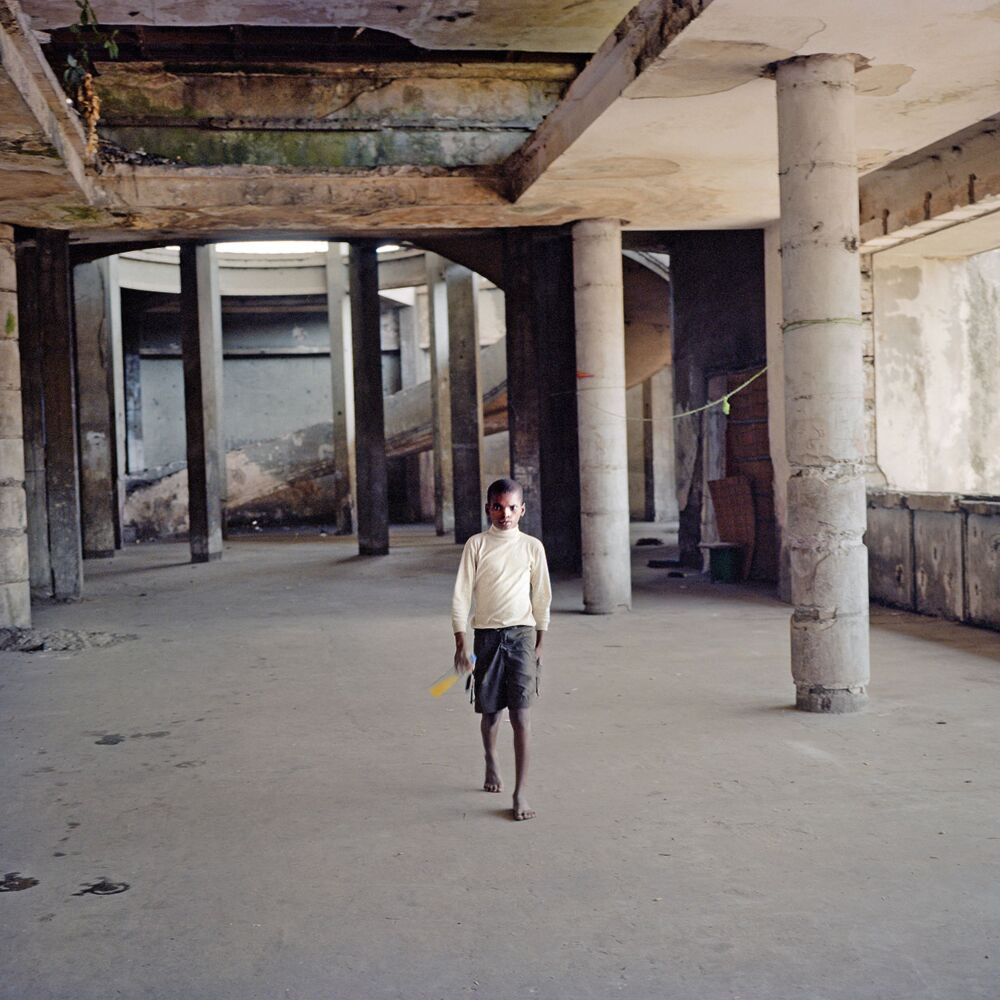 Elsa muss nur die Seite der breiten Straße wechseln, und sie steht vor ihrem Zuhause: ein monumentales graues Gebilde aus Säulen und Bogen, drei Stockwerke hoch. Ein gigantisches Betonwesen, das sich über das Viertel erhebt. Aus einigen Fensteröffnungen wachsen Mangobäume, aus anderen flattern bunte Windeln, Röcke, Hosen. Mehr als 1000 Menschen verbirgt es in seinem Inneren – Hausbesetzer. Wie viele genau, weiß niemand. Die meisten seiner Bewohner glauben, dass sie mindestens 3500 sind. Elsa ist eines von 200 Kindern, die in ihm leben.