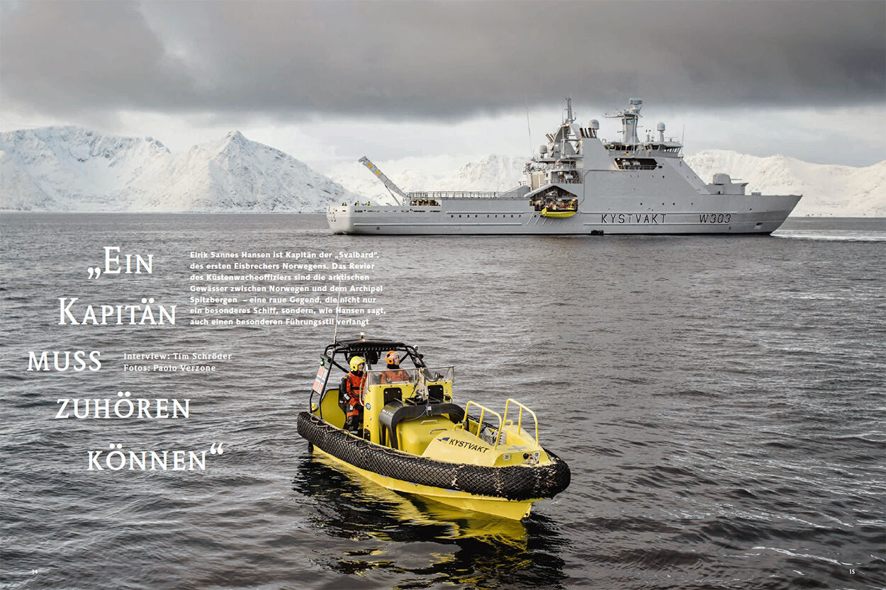 Auch wenn Sie immer wieder Forscher mit an Bord haben, ist die „Svalbard“ ja in erster Linie ein Schiff der Küstenwache. Welche Aufgaben hat sie?