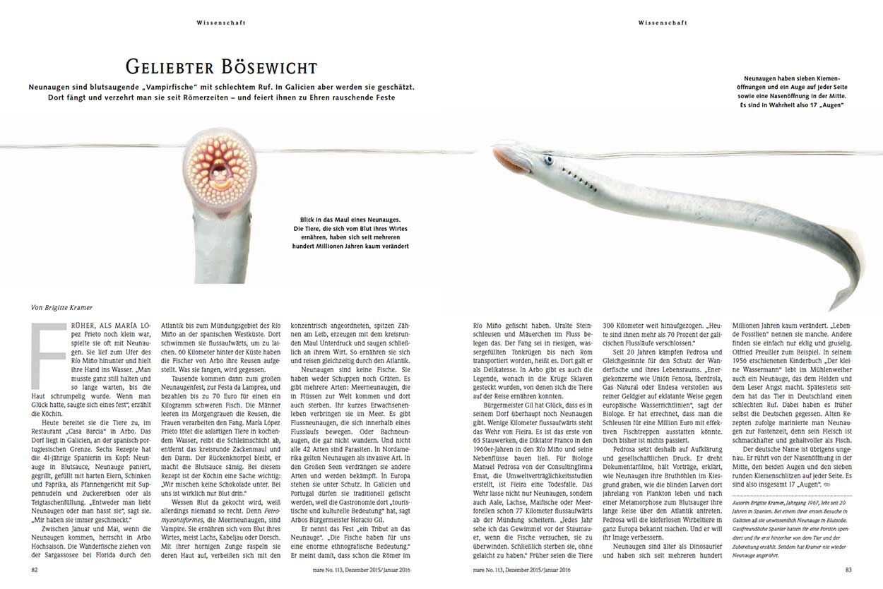Neunaugen sind blutsaugende „Vampirfische“ mit schlechtem Ruf. In Galicien aber werden sie geschätzt. Dort fängt und verzehrt man sie seit Römerzeiten – und feiert ihnen zu Ehren rauschende Feste.