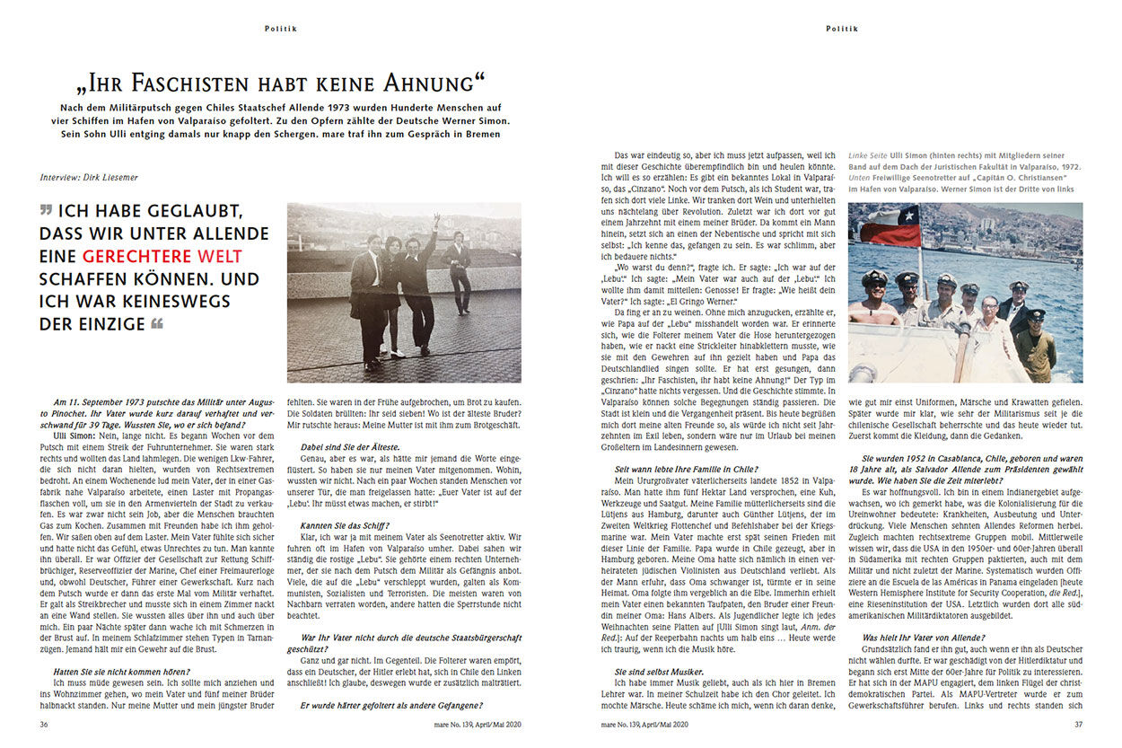 Dirk Liesemer, Jahrgang 1977, freier Autor in München, hat schon viele Interviews geführt, aber kaum eines fand er so spannend, so bewegend wie das Gespräch mit Ulli Simon. Vorab hatte er dessen eindrückliches Buch Septembertage/Días de Septiembre gelesen, das 1998 mitsamt einer Musik-CD erschienen und antiquarisch erhältlich ist.