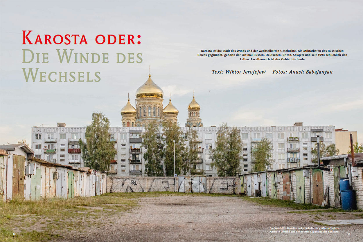| Vita | Wiktor Jerofejew, Jahrgang 1947, gehört zu den bedeutendsten Schriftstellern Russlands. Er ist regelmäßiger mare-Autor. Seit seiner Recherche in Lettland weiß er: „Wir alle sind ein bisschen wie dieses verrückte baltische Karosta: Wir gehen in uns selbst, um besser zu verstehen, wer wir sind.“ Die armenische Fotografin Anush Babajanyan, geboren 1983, lebt in Eriwan und München. Zwei Wochen fotografierte sie im Auftrag von mare in Karosta und Umgebung. „Während ich entlang der Ruinen der historischen Festung fuhr, offenbarte sich mir mit jeder Kurve eine neue Facette der Vergangenheit und Gegenwart dieses Gebiets. Diese Erfahrung wurde zu einer meditativen Erkundung von Landschaft, Geschichte, Erinnerung und Wandel.“ |