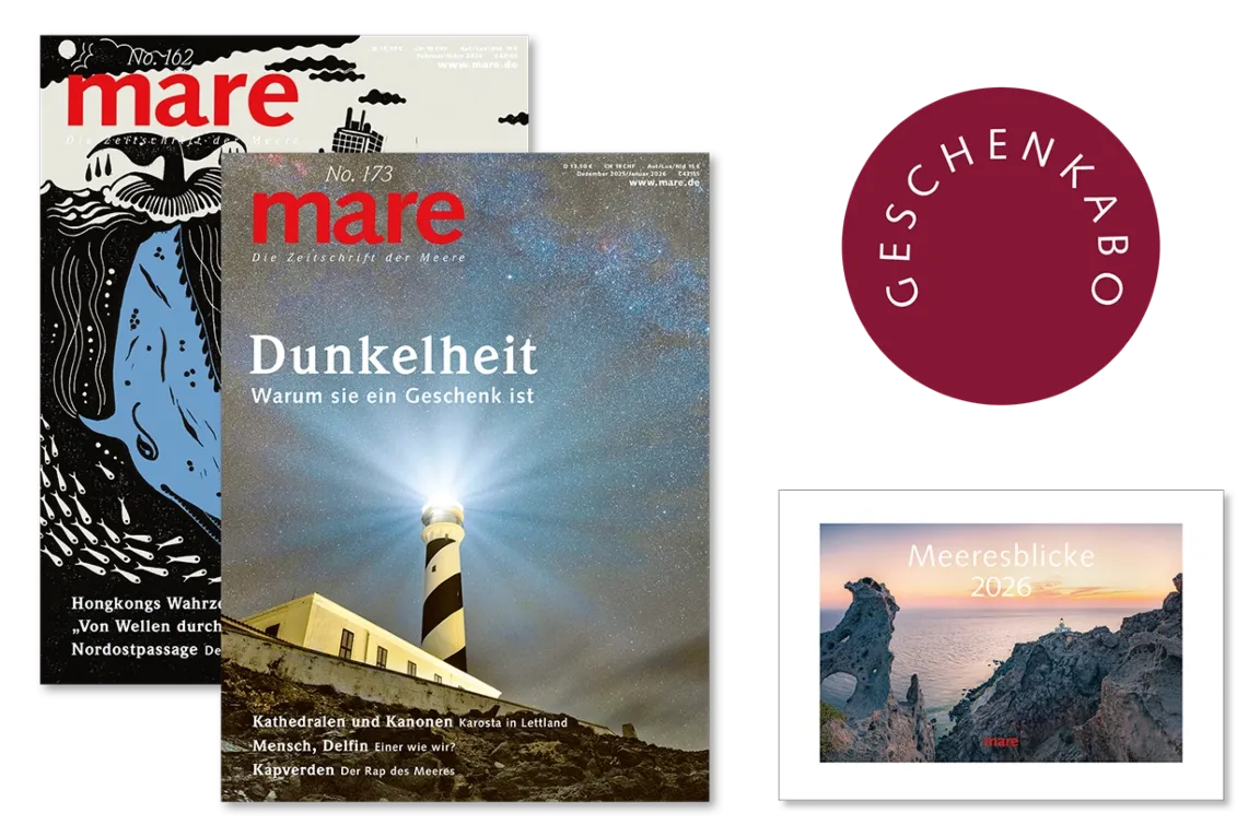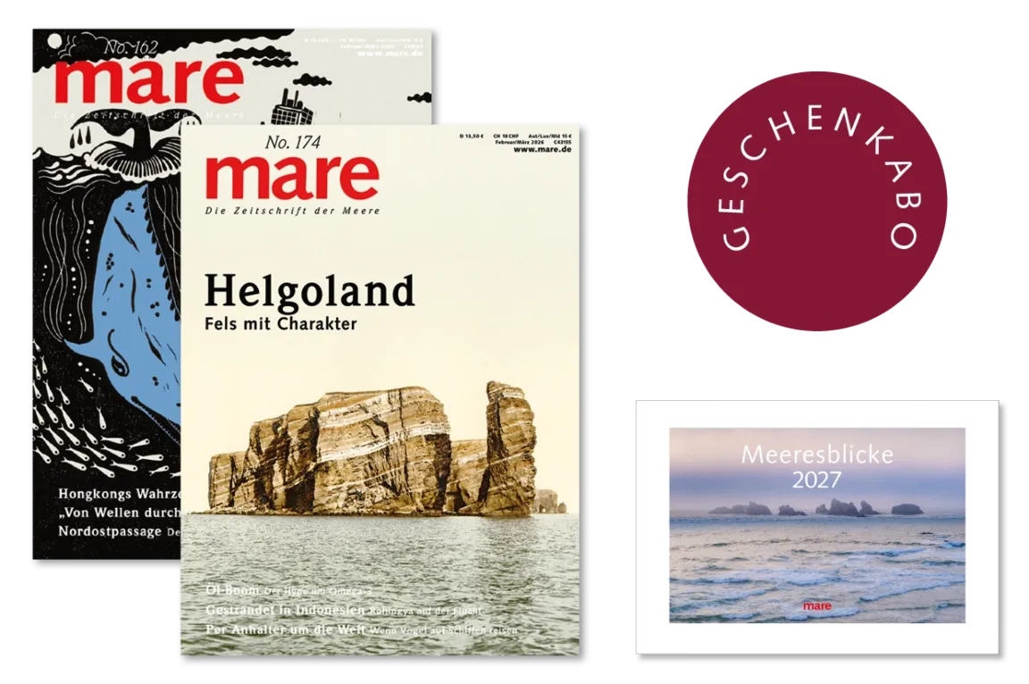 Verschenken Sie mare und den Kalender zum attraktivem Abopreis. Für das Geschenkabo zahlen Sie 67,50 € statt 81 € und für den Kalender nur 40 € statt 49 €. Der/die Beschenkte erhält die 6 Hefte und den Kalender pünktlich frei Haus (D, A) geliefert.