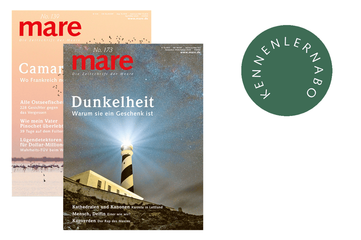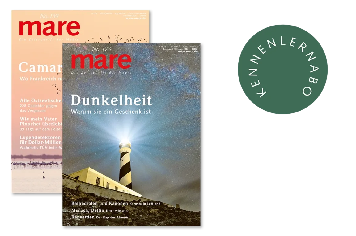Mit dem supergünstigen Probeabo testen Sie mare für die nächsten 3 Ausgaben und zahlen dafür nur 28 Euro statt 40,50 Euro. Nach einem halben Jahr beziehungsweise 3 Heften entscheiden Sie, ob Sie dabei bleiben möchten.