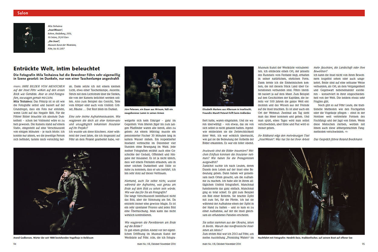 Die Fotografin Mila Teshaieva hat die Bewohner Föhrs sehr eigenwillig in Szene gesetzt: im Dunkeln, nur von einer Taschenlampe angestrahlt