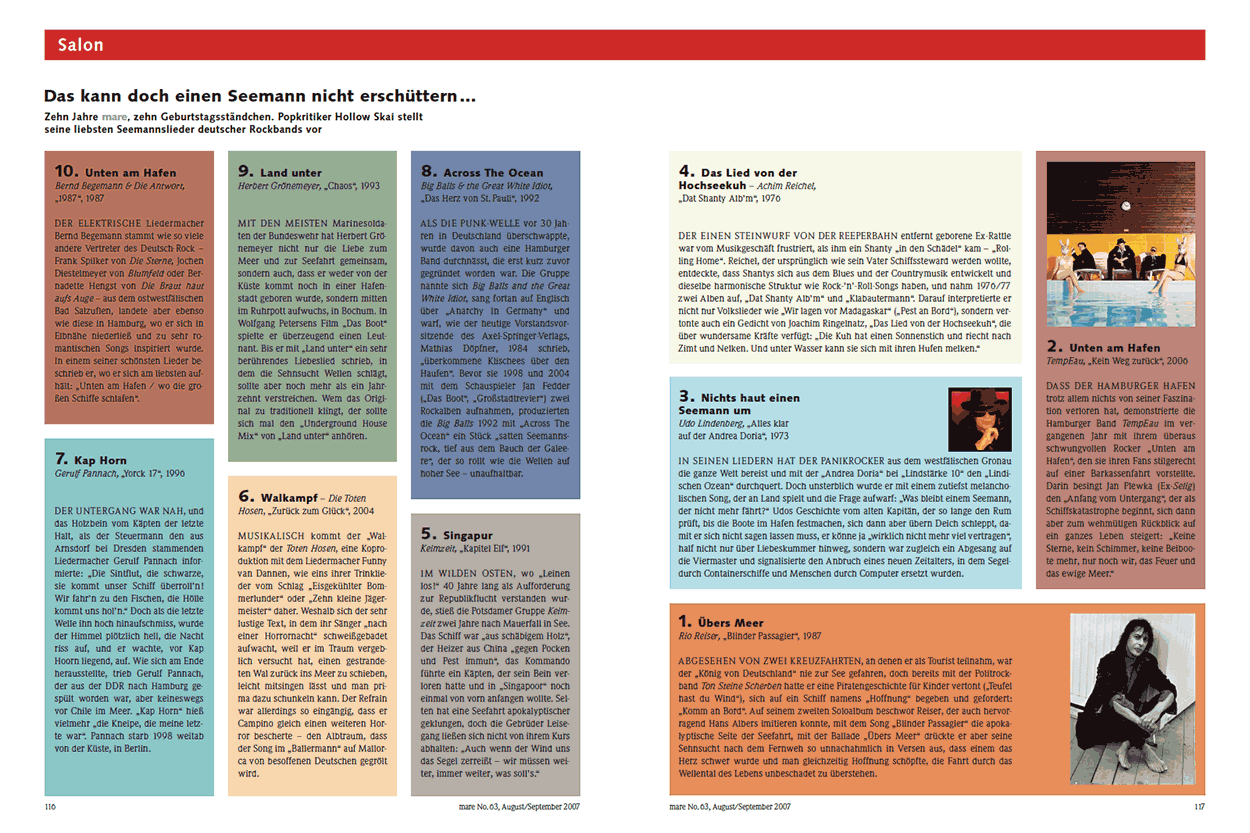 Zehn Jahre mare, zehn Geburtstagsständchen. Popkritiker Hollow Skai stellt seine liebsten Seemannslieder deutscher Rockbands vor
