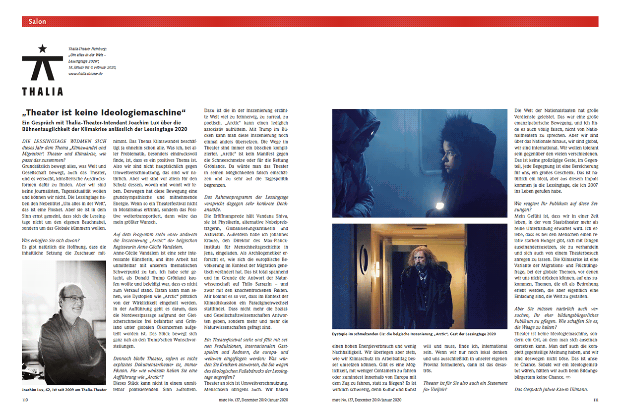Ein Gespräch mit Thalia-Theater-Intendant Joachim Lux über die Bühnentauglichkeit der Klimakrise anlässlich der Lessingtage 2020