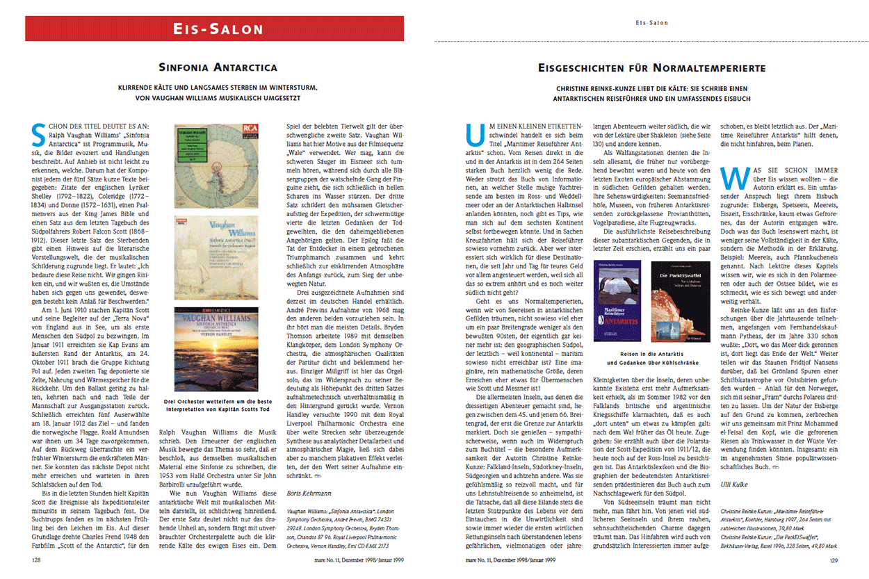 Christine Reinke-Kunze: „Maritimer Reiseführer Antarktis“, Koehler, Hamburg 1997, 264 Seiten mit zahlreichen Illustrationen, 39,80 Mark