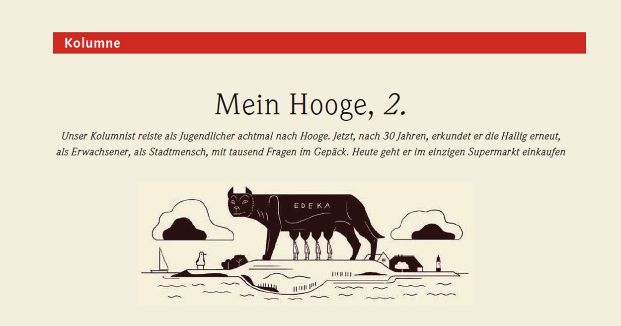 Unser Kolumnist reiste als Jugendlicher achtmal nach Hooge. Jetzt, nach 30 Jahren, erkundet er die Hallig erneut, als Erwachsener, als Stadtmensch, mit tausend Fragen im Gepäck. Heute geht er im einzigen Supermarkt einkaufen