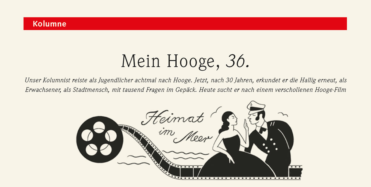 Unser Kolumnist reiste als Jugendlicher achtmal nach Hooge. Jetzt, nach 30 Jahren, erkundet er die Hallig erneut, als Erwachsener, als Stadtmensch, mit tausend Fragen im Gepäck. Heute sucht er nach einem verschollenen Hooge-Film