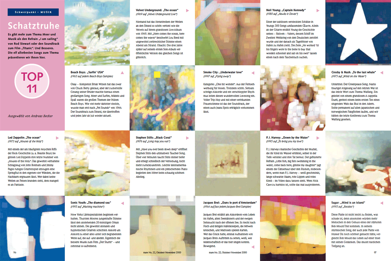 Niemand hat das Herantreiben der Wellen an den Strand so schön vertont wie die Velvets auf ihrem grandiosen Live-Album von 1969. Mit „Here comes the ocean, here comes the waves“ beschwört Lou Reed mit ungewohnt zerbrechlicher Stimme einen Abend am Strand. Obacht: Die drei Jahre später auf seinem ersten Solo-Album veröffentlichte Version des gleichen Songs ist grässlich.