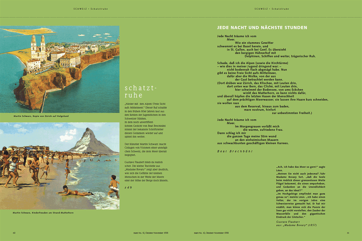Der Künstler Martin Schwarz macht Collagen von Visionen einer unmöglichen Schweiz, die dem Meer überall begegnet.