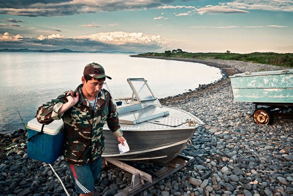 Dass die Männer nicht zu einer Spritztour zu den Grotten aufbrechen, weiß hier jeder. Sie haben Wichtigeres vor: die Kontrolle der Reusen. Die geplante Route führt von Slawjanka bis zur Insel Stenina im Rimski-Korsakow-Archipel, gleich an der Grenze des Fernöstlichen Meeresnaturreservats, zu dem die Zufahrt ohne Genehmigung verboten ist.