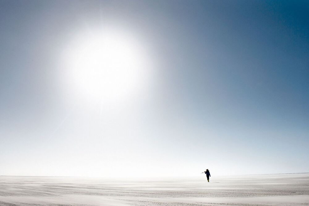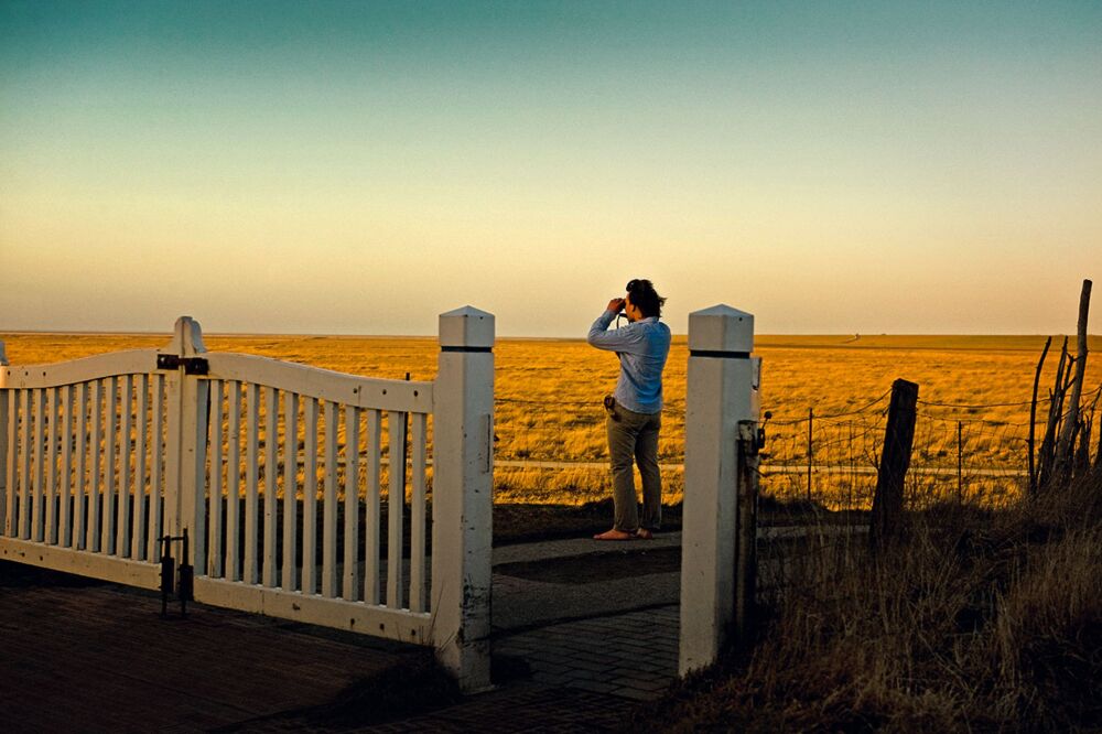 Philip singt das Lied gerne mit, aber jetzt am Priel vor der Sandbank von Westerhever merkt der Zivildienstleistende, dass in seinen Lieblingsgummistiefeln ein Loch ist. Das Wasser steigt, Philip sieht sich um. Es ist März, die Temperatur um den Gefrierpunkt. Zurückgehen? Nein. Die nächsten Stunden wird er auf der Sandbank sein Tagwerk vollbringen. Da klemmt sich der König das Stativ zur Vogelbeobachtung unter die Schulter und hüpft auf einem Bein durchs Wasser. In jungen Jahren sind Demut und praktische Lösungen noch nah beieinander. Die Arbeit kann kommen, das Hochwasser auch.
