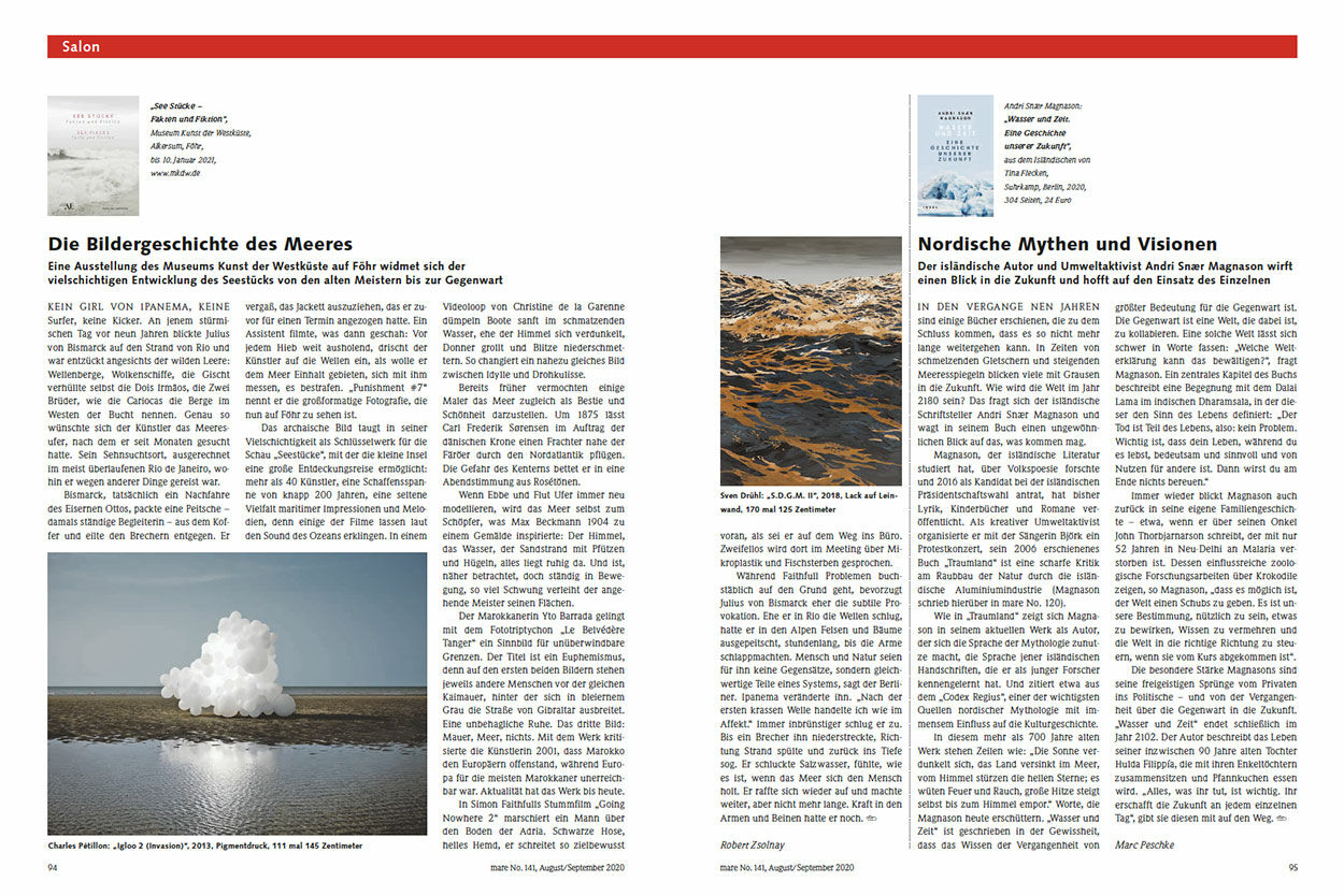 Auch wir schreiten voran. Ab sofort finden Sie im Buchhandel und im Shop unserer Website erstmalig unseren neuen mare-Kulturkalender 2021. Jede Woche erwartet Sie darin die hoffentlich immer wieder aufs Neue überraschende Kombination aus einem aufregenden Bildmotiv mit einem sinnvollen Gedanken.