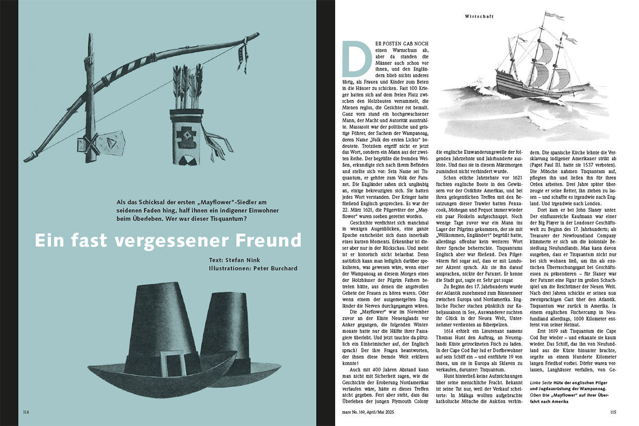 Als sich im Jahr 1621 die Pilgerväter der „Mayflower“ an Neuenglands Küste von Indigenen bedroht fühlen, half ein Ureinwohner den Neuankömmlingen. Er sprach zu ihnen in fließendem Englisch. Wer war dieser Tisquantum?